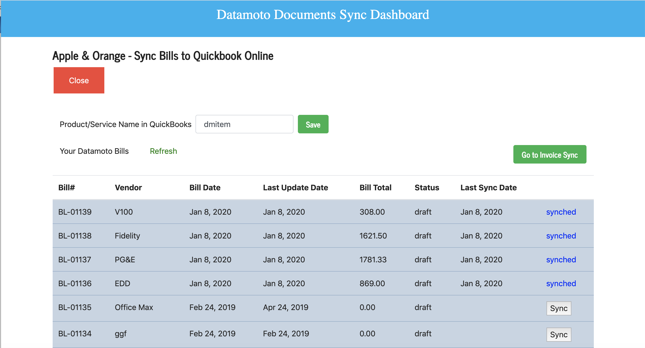 - Now you can sync your Datamoto invoices to Quickbooks Online.