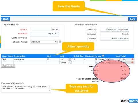 Create Invoice Template, Quote Template, Order Template
